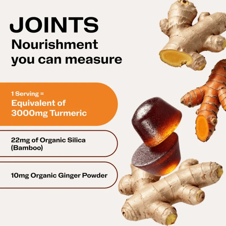 To sastāvā ir organiska kurkuma, organisks ābols, organisks ingvers un no organiskā bambusa iegūts silīcijs. Atšķirībā no parastajām gumijas konfektēm, šie kumosiņi nesatur pievienotus cukurus, saldinātājus, aromatizētājus, krāsvielas vai želatīnu. - Efektivitāte, ko var izmērīt.